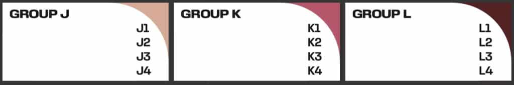Die zwölf Gruppen sind wie folgt angeordnet: